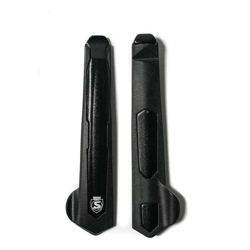 Un levier en aluminium forgé, qui est recouvert d’un renfort en nylon semi-rigide sur le côté de la jante pour protéger votre jante carbone.