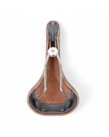 Les selles sont entièrement dĂ©montable grâce au système d’assemblage du cuir sur l’armature, assurĂ© par des vis en acier inoxydable dont les tĂŞtes se logent dans des coupelles en laiton. Ces coupelles de forme intĂ©rieure conique s’encastrent dans les logements emboutis dans le cuir, assurant ainsi un maintien parfait de l’ensemble.